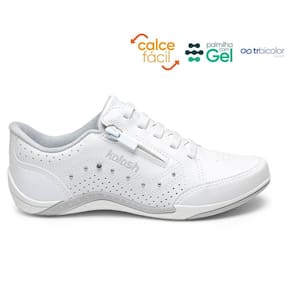 Tênis Casual Kolosh Supremo Calce Fácil Com Ziper Microfuros Strass C1299 - Feminino - Branco - 37