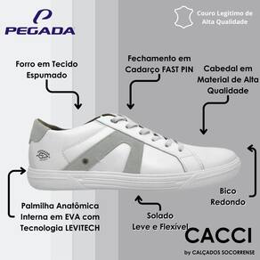 Esse tênis em couro branco é super leve e estiloso. O forro em tecido espumado garante o conforto e a absorção de suor, características necessárias para manter o pé seco e arejado. Já a palmilha é macia e confortável. A linha Flight é leveza para ir mais longe, isso porque o solado conta com a nossa tecnologia LEVITECH, deixando o calçado superleve, pesando menos de 250 gramas por pé, que proporciona maior leveza e conforto ao caminhar. Além de tudo isso o modelo ainda possui o sistema "FAST PIN" da Pegada, que é um cadarço elástico com uma ponteira em metal que permite o ajuste sem a necessidade de amarrar, trazendo muita praticidade na hora de calçar.