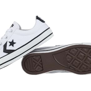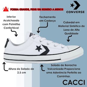 Estilo Atemporal: O cabedal em lona de algodão de alta qualidade, combinado com o icônico Star Chevron nas laterais e a logo Converse All Star na língua e no contraforte, confere um visual vintage e estiloso, ideal para quem ama moda retrô.