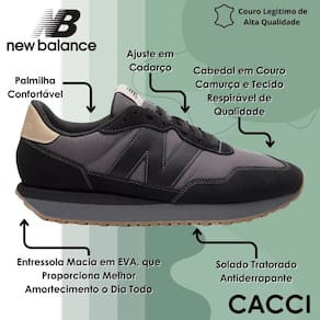 O tênis New Balance 237, ou Casual New Balance Masculino Oiginal 237v1 é um clássico retrô Running, é confeccionado em couro camurça com recortes em material têxtil. Ele combina com diversos estilos para qualquer ocasião do seu dia a dia.