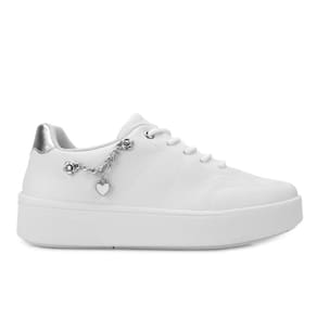 Nome: Tênis Casual Ramarim e Meia RM24-24831. Gênero: Feminino. Indicado Para: Moda-Dia a Dia. Ocasião: Casual. Material Externo: Alternativo. Material Interno: Têxtil. Detalhe: Corrente com pingente de coração na lateral externa. Recorte e costura metalizado com logo da marca na parte de trás. Fechamento: Cadarço. Palmilha: EVA forrada e macia. Altura do Solado: 4 cm. Solado: Borracha antiderrapante. Peso do Produto: 931 kg (o peso varia de acordo com a numeração). Garantia do Fabricante: Contra defeito de fabricação. Origem: Nacional. Código Produto: 02024755. Marca: Ramarim. Acompanha um par de meias tamanho 33 / 38. Composição: 83 % Algodão. 12 % Poliéster. 05 % Elastodieno.