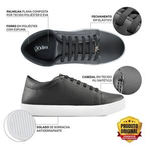 Tenis Casual Sapatenis Godiva Preto Cadarço Elastano Confortavel 333957