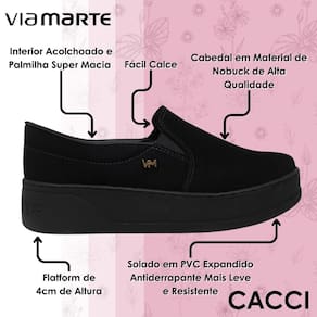 Modelo Tenis Casual Slip On Via Marte 023.010 confeccionado com material sintético de alta qualidade, gerando maior durabilidade ao calçado. Tem solado de 3,5 cm de altura, produzido em PVC expandido, deixando o produto leve e resistente. O conforto é garantido pela forração interna em têxtil, espuma em toda volta do calcanhar e palmilha super macia. Os detalhes ficam por conta do relevo no cabedal em desenho infinity, boton do logo da marca e sola com listras, deixando o modelo super moderno e estiloso!