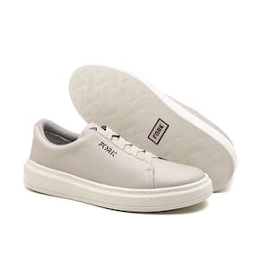 Tenis Casual Sneaker Couro Collins Masculino Bege Calce Facil Elastico Solado Costurado - 38 - Bege