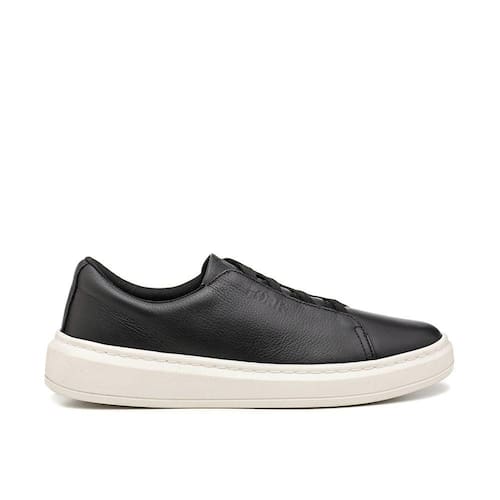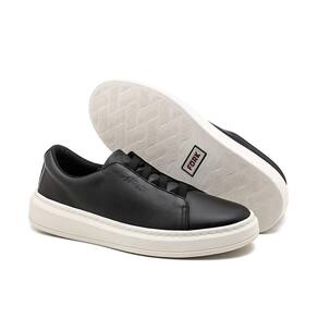 Tenis Casual Sneaker Couro Collins Masculino Preto Calce Facil Elastico Solado Costurado - 43 - Preto