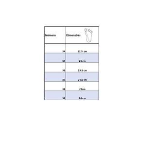 Recomendações de Uso: A limpeza do calçado pode ser feita com sabão neutro e pano úmido. Não deixar submerso em água e não utilizar nenhuma forma de calor para secar. Guardar em local sem umidade.
