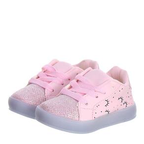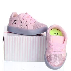 O Tênis calce fácil chuva de amor com luzinha led que acende rosa com detalhes em glitter .