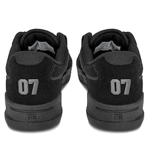 Detalhes da Marca DC Shoes: Logotipo icônico no cabedal e no solado, reafirmando a autenticidade do produto.