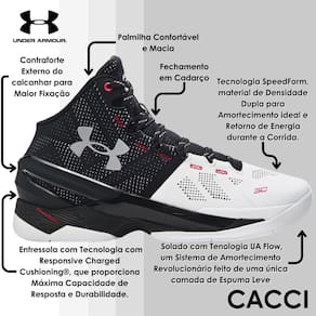 O Under Armour Curry 2 retorna às quadras com este lançamento de edição limitada, lembrando a celebração de sua aparição na revista GQ de 2015 com esta paleta de cores 'Suit & Tie'. Este design de dois tons certamente ficará perfeito em qualquer quadra. Desempenho explosivo é o objetivo de Steph Curry, e a entressola moldada Charged Cushioning extremamente responsiva pode ajudar a mantê-lo voando para cima e para baixo na quadra com facilidade. Leve e respirável, a parte superior Speedform adiciona uma sensação fresca, próxima e personalizada que não restringe, enquanto as hastes do calcanhar/meio e o contraforte do calcanhar oferecem estabilidade.