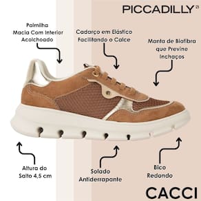 Este modelo Piccadilly foi desenvolvido para quem deseja conforto real em cada passo, trazendo um visual moderno e cheio de estilo para acompanhar a rotina sem esforço. O acabamento bem trabalhado e a combinação inteligente de materiais criam uma experiência de uso leve, macia e acolhedora, ideal para longos períodos em pé ou caminhadas frequentes ao longo do dia.