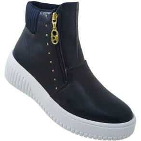 O Tênis Feminino Botinha Beira Rio 4316.109 é uma peça que combina conforto, modernidade e sofisticação em um único modelo. Seu design estilo botinha traz um visual urbano e elegante, ideal para mulheres que desejam praticidade sem abrir mão de estilo. Confeccionado em material sintético de alta qualidade, o tênis apresenta acabamento liso e macio, além de detalhes charmosos como os mini-pontos metálicos dourados e o zíper decorativo com puxador dourado, que garantem um toque de brilho e personalidade ao calçado. O cano médio conta com aplicação têxtil canelada na parte de trás, garantindo maior conforto e ajuste na região do tornozelo.
