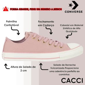 A nova coleção Taylored Lux traz a sofisticação da alfaiataria para o icônico Chuck Taylor, resultando em um visual que combina casualidade e elegância. Confeccionado em tecido de algodão tipo lona, esse modelo apresenta costuras duplas no cabedal, garantindo mais resistência e durabilidade. O conforto é aprimorado com forro interno acolchoado e ilhoses laterais que permitem a ventilação ideal para os pés. O clássico logo Converse All Star aparece sutilmente na heeltab do calcanhar e na tag da língua, reforçando a autenticidade do design. Para finalizar, o solado de borracha vulcanizada proporciona aderência e estabilidade a cada passo, tornando este modelo perfeito para quem busca estilo e sofisticação no dia a dia.