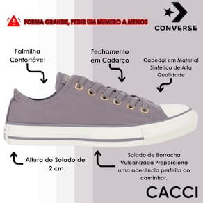 A nova coleção Taylored Lux traz a sofisticação da alfaiataria para o icônico Chuck Taylor, resultando em um visual que combina casualidade e elegância. Confeccionado em tecido de algodão tipo lona, esse modelo apresenta costuras duplas no cabedal, garantindo mais resistência e durabilidade. O conforto é aprimorado com forro interno acolchoado e ilhoses laterais que permitem a ventilação ideal para os pés. O clássico logo Converse All Star aparece sutilmente na heeltab do calcanhar e na tag da língua, reforçando a autenticidade do design. Para finalizar, o solado de borracha vulcanizada proporciona aderência e estabilidade a cada passo, tornando este modelo perfeito para quem busca estilo e sofisticação no dia a dia.