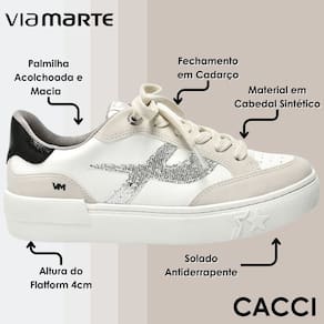 O tênis Via Marte é a escolha perfeita para quem busca estilo e conforto. Seu solado Flatform de 3cm proporciona uma caminhada estável e confortável, garantindo o máximo de conforto aos seus pés.