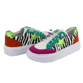 Tenis Feminino Casual Camurça Fechamento Cadarço Animal Print Zebra Palmilha Gel Macia Dia a Dia - 34 - Verde