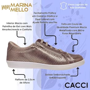 Se você ama unir praticidade, conforto e um toque fashion, o Novo Tênis Casual Feminino Metalizado da Marina Mello foi feito para você! Com um design moderno e cheio de estilo, ele é confeccionado em couro premium metalizado com micro furos respiráveis, proporcionando um ajuste perfeito e frescor para os pés ao longo do dia.