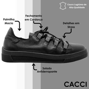 Tenis Feminino Casual Conforto Couro Strass CACCI - Preto - 35