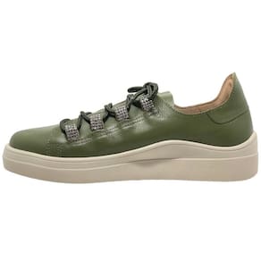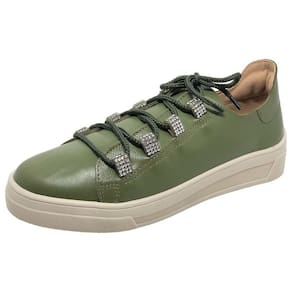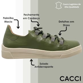 Tenis Feminino Casual Conforto Couro Strass CACCI - Verde Musgo - 36