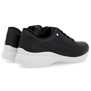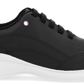 Tênis cabedal em couro tênis na cor amêndoa detalhe em laser fechamento elástico. O modelo possui tecnologia Calce Fácil, com modelagem inteligente em adaptar o calçado a ergonomia dos pés.