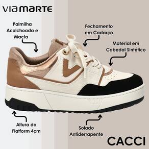 O tênis Via Marte é a escolha perfeita para quem busca estilo, conforto e um visual único. Seu solado Flatform de 4cm proporciona estabilidade e conforto durante a caminhada, combinando uma composição sofisticada de materiais, cores e detalhes.