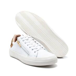 Tênis Feminino Casual Couro Recortes Fechamento Cadarço - 37 - Branco