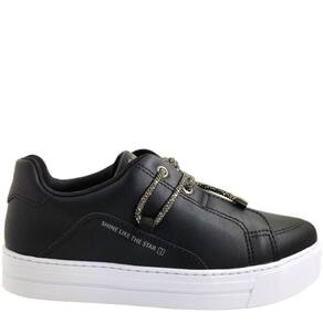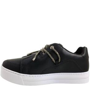 Porém o que realmente rouba o show são os apliques cuidadosamente posicionados nos atacadores e no cadarço do produto. Cada aplique é uma faísca de glamour, transformando este tênis de extraordinário em excepcional. Sua versatilidade é o ponto forte. Combine com jeans para um visual casual chique, com saias para um toque feminino, ou até mesmo com vestidos para um look ousado. Este tênis é a escolha certa para todos os momentos.