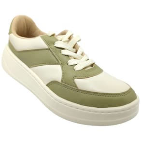 Este tênis combina estilo e conforto em um design moderno e versátil. Com uma paleta de cores suave que mescla verde oliva e branco, ele apresenta um visual clean e atual, ideal para quem busca um calçado casual com um toque de elegância. O cabedal é feito em material sintético de alta qualidade, com acabamento texturizado nas áreas verdes e superfície lisa nas partes brancas, proporcionando contraste e sofisticação. O forro interno é acolchoado, oferecendo mais conforto no uso diário, enquanto o solado branco robusto garante estabilidade e aderência. Os cadarços grossos em tom off-white complementam o design, reforçando a proposta urbana e contemporânea do calçado. Perfeito para compor looks casuais e descontraídos, é uma escolha excelente para quem valoriza estilo e praticidade no dia a dia.