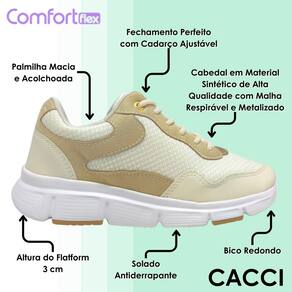 Perfeito para compor looks casuais, urbanos ou até mesmo esportivos, esse modelo é ideal para trabalhar, caminhar ou curtir momentos de lazer com muito mais leveza e confiança. Um tênis versátil que combina bem com calças, leggings e vestidos descontraídos, trazendo bem-estar em qualquer ocasião.