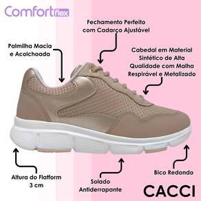 Este tênis feminino Comfortflex é a escolha certa para quem valoriza conforto, respirabilidade e design moderno no dia a dia. O cabedal é confeccionado em material sintético de alta qualidade com acabamento em malha respirável e variações com detalhes metalizados, garantindo frescor e charme em cada passo. O fechamento com cadarço ajustável proporciona ajuste ideal ao formato dos pés, oferecendo praticidade e segurança durante o uso prolongado.