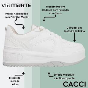 O Tênis Via Marte apresenta cabedal em material sintético de alta qualidade, garantindo resistência e estilo. Seu formato possui bico arredondado, proporcionando conforto aos dedos. A coloração uniforme do material confere um visual elegante. O estilo de fechamento é por cadarço, assegurando ajuste firme e personalizado. A abertura para calce é ampla, facilitando o uso diário. A construção ergonômica da peça visa proporcionar conforto ao caminhar. A palmilha é macia e a calcanheira oferece suporte adicional. O forro interior em tecido suave aumenta o conforto durante o uso. O solado é feito de borracha flexível, garantindo durabilidade e maleabilidade. O design moderno é destacado por detalhes decorativos como recortes e o logo da marca, combinando estilo e praticidade para diversas ocasiões. Como usar: Versátil e pode ser combinado com diversas opções de roupas femininas. Para um look casual, use com uma calça jeans skinny e uma camiseta básica ou um suéter leve. Para um estilo mais elegante e descontraído, combine com uma saia midi plissada e uma blusa de seda ou linho. No ambiente de trabalho casual, uma calça de alfaiataria e uma camisa de botão criam um visual sofisticado e confortável. Em dias mais quentes, um vestido soltinho são ótimas escolhas. Nos dias mais frios, aposte em uma legging ou jegging com um cardigan alongado ou uma jaqueta de couro. Para completar o look, adicione acessórios como bolsas estruturadas.