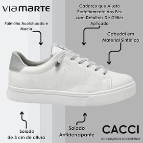Tenis Feminino Casual Glitter Via Marte 016-002 - 36 - Branco