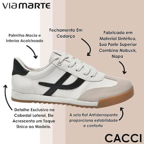 O tênis Via Marte é a escolha certa para quem busca estilo e conforto no dia a dia. Com palmilha macia e interior acolchoado, proporciona uma experiência extremamente agradável ao caminhar, mesmo por longos períodos. O fechamento em cadarço garante ajuste seguro e firme, adaptando-se perfeitamente aos pés com praticidade.