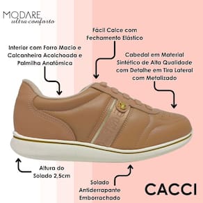 O tênis feminino conforto casual da Modare é a escolha ideal para quem busca praticidade e estilo em um só calçado. Com solado emborrachado de 2,5cm, ele proporciona segurança ao caminhar, graças à aderência eficiente, além de garantir uma base leve e confortável para o dia a dia. O fechamento com elástico torna o calce fácil e rápido, perfeito para a correria da rotina sem abrir mão do conforto.