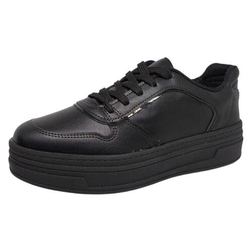 Por dentro, a palmilha macia e o interior acolchoado abraçam os pés com suavidade, proporcionando conforto prolongado em cada passo. A plataforma de quatro centímetros traz um leve ganho de altura, enquanto o solado antiderrapante garante estabilidade e segurança, mesmo nas superfícies mais lisas. O fechamento em cadarço ajustável oferece praticidade e encaixe perfeito.