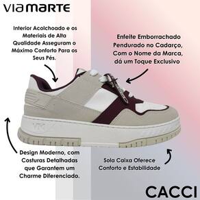O tênis casual Via Marte une design moderno e conforto para acompanhar sua rotina com muito estilo. Seu interior acolchoado, aliado aos materiais de alta qualidade, garante uma sensação macia e aconchegante a cada passo, mantendo os pés confortáveis durante todo o dia. O fechamento em cadarço oferece ajuste seguro, enquanto o enfeite emborrachado com o nome da marca adiciona um toque exclusivo e sofisticado ao modelo. As costuras detalhadas valorizam o visual, trazendo um charme diferenciado que combina com produções casuais ou mais elaboradas. O bico arredondado complementa o design, proporcionando um caimento harmonioso no pé e reforçando seu apelo versátil. O solado caixa, além de garantir estabilidade, contribui para um caminhar seguro e confortável, tornando o calçado ideal para longos períodos de uso. Perfeito para combinar com diferentes peças do guarda-roupa, desde jeans e calças alfaiataria até vestidos e saias, é a escolha certa para quem busca praticidade, estilo e bem-estar no dia a dia.