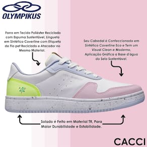 Reforçando o compromisso da Olympikus com a sustentabilidade, o modelo Urbano também integra a categoria casual com um modelo clássico, moderno e sustentável. O seu solado é feito em material TR, para maior durabilidade e estabilidade. Seu cabedal é confeccionado em sintético Coverline Eco e tem um visual clean e moderno, aplicação gráfica a base d’água do Selo Sustentável. Possui ainda forro em tecido poliéster reciclado com espuma sustentável, lingueta em sintético Coverline com etiqueta de fio pet reciclado e atacador no mesmo material. Sua palmilha é anatômica, composta por resíduos da empresa Vulcabrás e tecido poliéster reciclado com aplicação gráfica à base d’água. Conta ainda com QR Code que colabora com a sustentabilidade, diminuindo a quantidade de material informativo sobre o tênis.