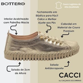Se você procura um calçado que una estilo, conforto e praticidade para o dia a dia, esse modelo da Bottero é a escolha certa. Com design contemporâneo e visual discreto, ele se adapta facilmente a diferentes composições, sendo ideal para quem valoriza versatilidade sem abrir mão da elegância. Cada detalhe foi pensado para oferecer uma experiência completa desde o primeiro uso, equilibrando bem-estar e um toque sofisticado na rotina.