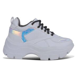 Tênis Feminino Chunky Tratorado Metalizado Cadarço Casual - 36 - Branco