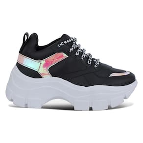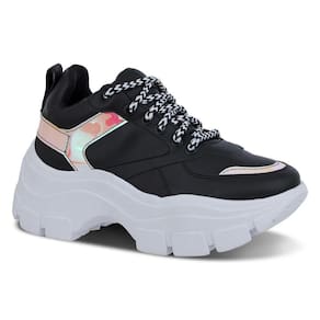 Tênis Feminino Chunky Tratorado Metalizado Cadarço Casual - 33 - Preto