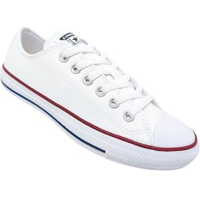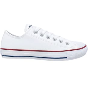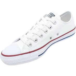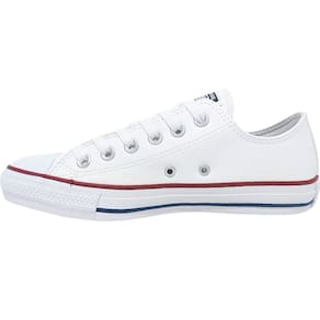 O tênis mais tradicional da Converse All Star confeccionado em material sintético semelhante ao couro. Os cadarços seguem a cor das costuras e da vira da borracha. A palmilha interna oferece conforto o dia todo, enquanto as cores básicas presentes neste modelo, inspiradas no estilo esportivo da década de 90, trazem um ar retrô e descomplicado. Os passadores aparecem na tonalidade prateada, incluindo os dois laterais responsáveis pela transpiração adequada dos pés. O logo Converse All Star aparece na tag aplicada no calcanhar. Um modelo simples, confortável e cheio de estilo.