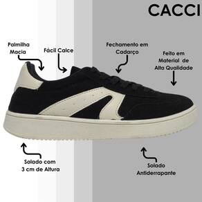 Seja para o dia a dia ou para ocasiões casuais, o Tênis Casual Feminino da Cacci é a combinação perfeita de conforto, estilo e qualidade. Garanta o seu e sinta a diferença no conforto e elegância em cada passo!