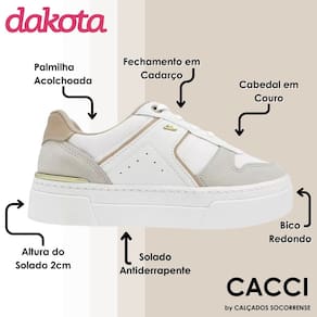 Este tênis Dakota combina o melhor dos mundos, oferecendo um visual moderno e despojado com a comodidade de uma sola flatform e o toque sofisticado dos detalhes. Com a sua construção em material sintético de alta qualidade, também garante durabilidade e facilidade de manutenção. Adicione esse tênis ao seu guarda-roupa e esteja preparada para destacar-se com um visual contemporâneo e cheio de estilo.