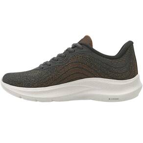 Seu cabedal é confeccionado em tecido jacquard com arte gráfica e linhas orgânicas, trazendo um visual de movimento. Conta também com detalhes em laminado que levam a tecnologia High Frequency.