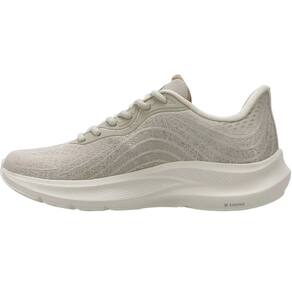 Seu cabedal é confeccionado em tecido jacquard com arte gráfica e linhas orgânicas, trazendo um visual de movimento. Conta também com detalhes em laminado que levam a tecnologia High Frequency.