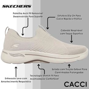 O Skechers GOwalk Arch Fit Iconic foi desenvolvido para quem exige praticidade e conforto contínuo na rotina. O design slip on facilita o calce, enquanto a tecnologia Arch Fit oferece suporte e absorção a cada passada. Com estrutura leve e ventilada, ele torna caminhadas diárias mais fluidas, estáveis e seguras, mantendo maciez do primeiro ao último uso.
