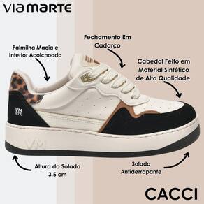 O tênis casual Via Marte com sola caixa é a combinação perfeita entre atitude e conforto para o dia a dia. Com design robusto e cheio de personalidade, ele traz uma mistura de texturas e materiais que elevam o visual a um novo patamar. A composição em nobuck, napa, new floater, metal dakar e detalhe em estampa animal print cria um efeito visual marcante, enquanto a paleta de cores — que transita entre o dourado, marrom, marrom claro, off white e preto — garante sofisticação e versatilidade em um único modelo.