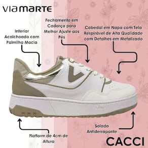 O tênis Via Marte é a escolha perfeita para quem busca estilo, conforto e um visual único. Com seu solado Flatform que proporciona estabilidade e conforto durante a caminhada, esse calçado combina uma linda composição de materiais, cores e peças. Seu design moderno e cuidadosamente elaborado, com recortes diferenciados e costuras detalhadas, garantem um charme extra. Além disso, o interior acolchoado e os materiais de alta qualidade asseguram o máximo conforto aos seus pés. O tênis Via Marte é a opção versátil e elegante que oferece estilo e bem-estar em todas as ocasiões.