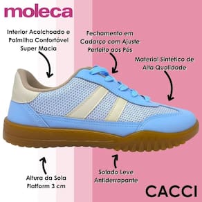 Versátil e cheio de personalidade, o Tênis Moleca combina com jeans, vestidos, shorts e diversas outras peças, sempre trazendo aquele toque de charme descontraído que transforma qualquer look. Seja para a rotina ou momentos de lazer, ele é um verdadeiro aliado no seu dia a dia, oferecendo o equilíbrio perfeito entre beleza, funcionalidade e bem-estar.