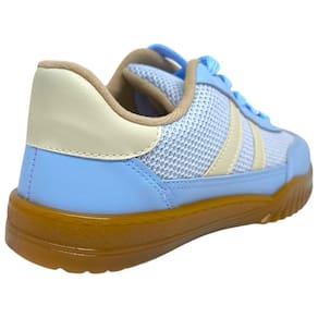 Seu interior conta com um acolchoamento especial que envolve o pé com suavidade, além de uma palmilha super macia que proporciona uma pisada leve e agradável. Esse conforto interno faz com que o tênis seja ideal para longos períodos de uso, acompanhando seus passos com leveza e estabilidade. O cabedal é confeccionado em material sintético de alta qualidade, que alia durabilidade e aparência refinada, mantendo o calçado bonito por mais tempo.