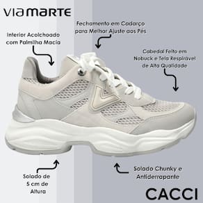 O tênis casual jogging da Via Marte é a opção perfeita para quem valoriza conforto e estilo. Seu solado Chunky, inspirado no design jogging, oferece uma caminhada suave e flexível, garantindo o máximo conforto para os pés, e apesar de sua altura ele não interfere a segurança na caminhada.